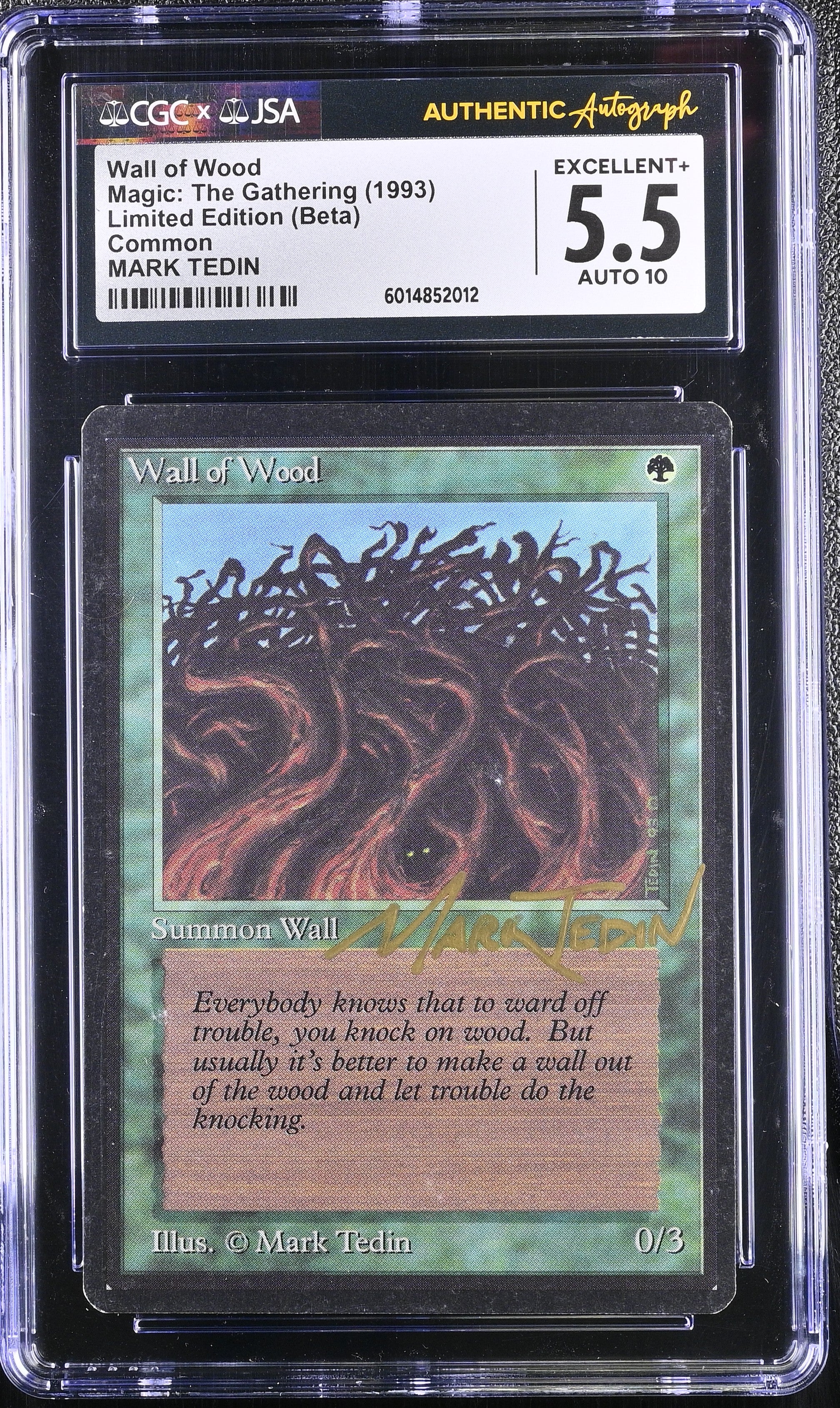 Magic MTG Wall of Wood [Beta Edition] Graded CGC 5.5 Ex+ JSA Mark Tedin Autograph