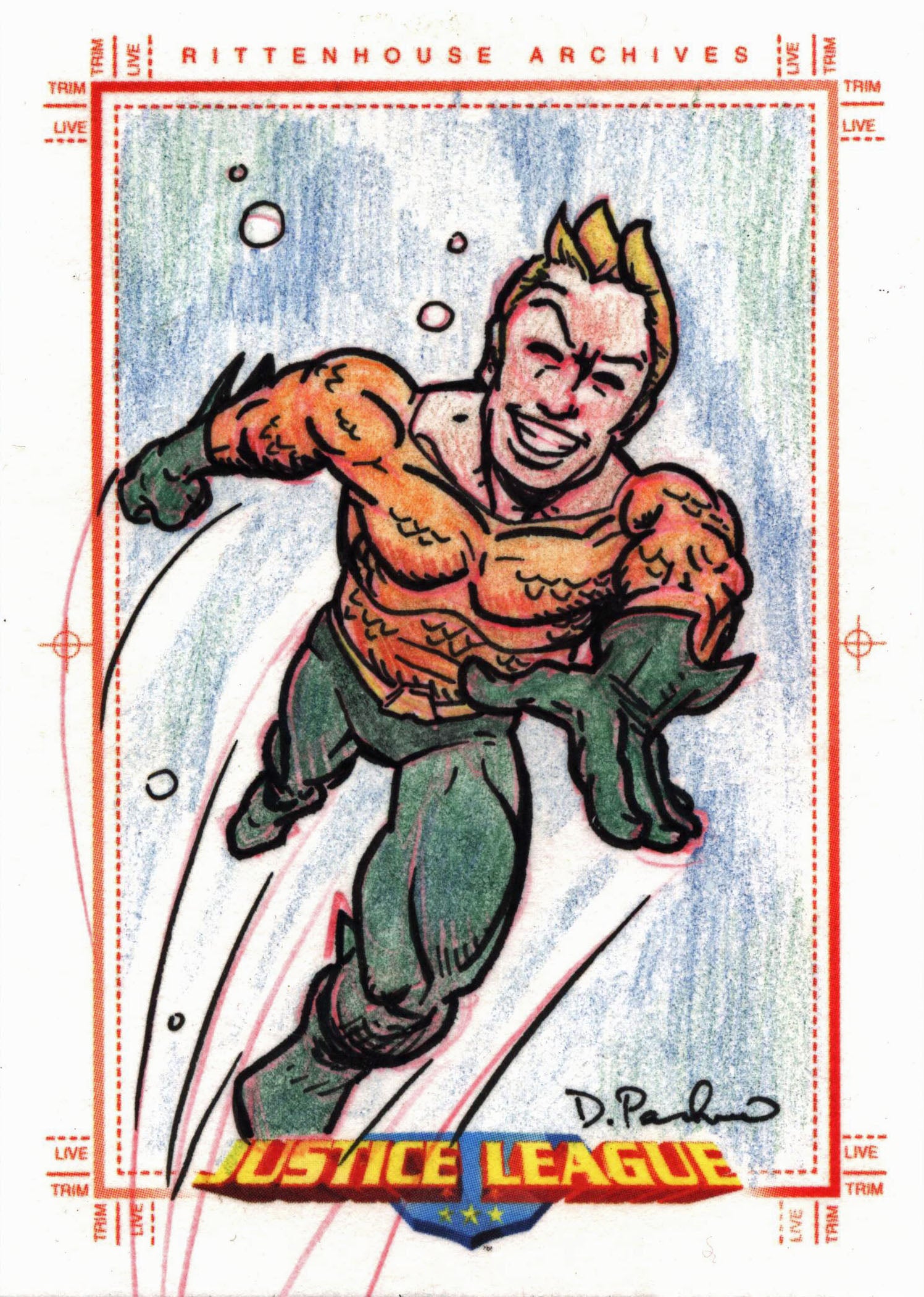 Justice League Archives Sketch Card by Dennis Pacheo of Aquaman