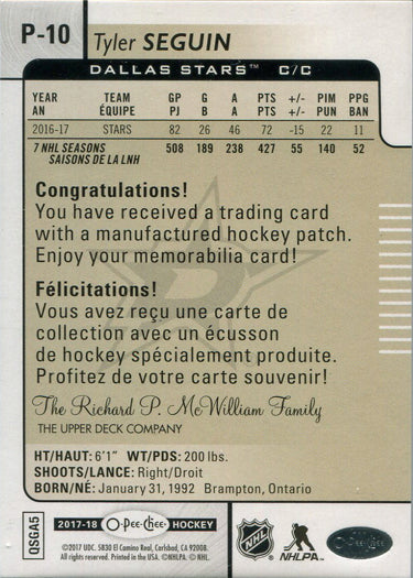 O-Pee-Chee Hockey 2017-18 Manufactured Patch Card P-10 Tyler Seguin