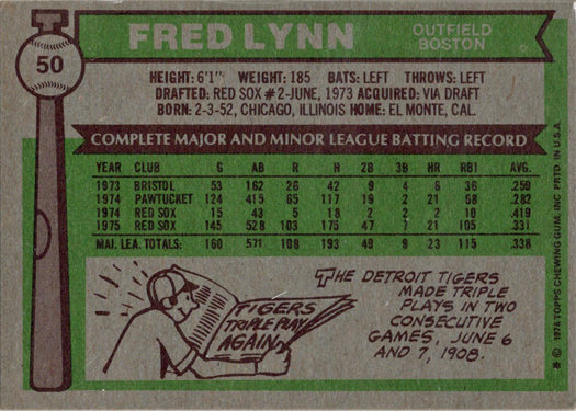 Topps Baseball 1976 Base Card 50 Fred Lynn
