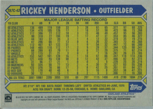 Topps Series One Baseball 2022 Chrome Silver Card T87C-42 Rickey Henderson