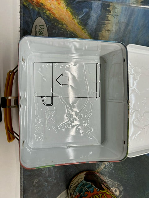 Step back into the arcade era with this iconic 1983 Aladdin Industries Dragon's Lair metal lunch box and thermos set. Featuring the classic arcade game's vibrant graphics and legendary characters, this collectible piece is a must-have for retro gamers and pop culture enthusiasts. The sturdy metal lunch box and matching thermos are perfect for storing your snacks and drinks while keeping them cool. With its nostalgic design and durable construction, this set is a timeless treasure that will transport you back to the golden age of video games.